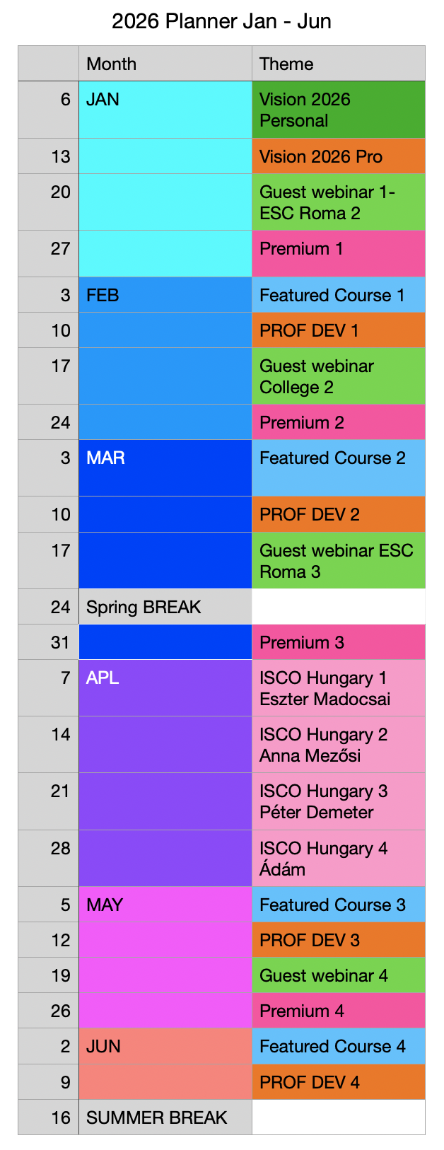 This is all our events so far as of January 2026. The events you will have access to will depend on your membership level and exact themes and presenters are sometime still TBC